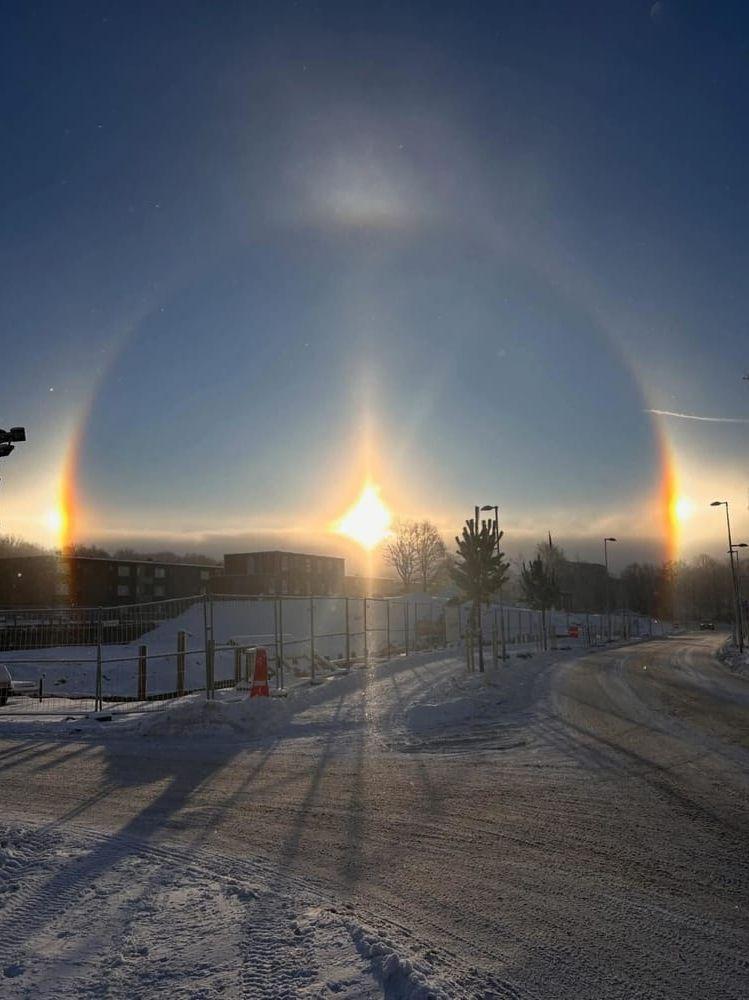 Onsdagens snökaos har minst sagt satt käppar i hjulen för både kollektivtrafiken och personbilar. Men tisdagens vinterväder var både lugnare och vackrare. Härryda-Posten har tagit del av flera bilder från när väderfenomenet halo uppenbarade sig i kommunen.